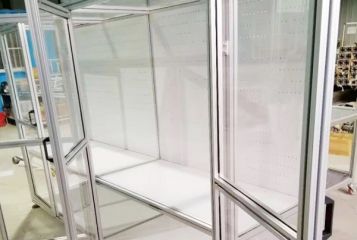 鋁型材框架定製用鋁合金型材組裝的所(suǒ)以它的防腐性(xìng)能非常好因為它們(men)表麵有一層非常厚的陽極氧化膜保護著,所以它不易被氧化(huà)不(bú)易被腐蝕。大多數人都看中這一點,但是很多懂門道的人都知道鋁型材的優勢還有很(hěn)多(duō)而且對於一些用戶來說(shuō)防(fáng)腐耐磨這個還不是最主要的,最主要的優(yōu)勢其實是用(yòng)鋁型(xíng)材實現框架定製是全程無焊接的,它(tā)們有專(zhuān)門的零配件組裝連接,沒有縫(féng)隙非常環保並且想要拆卸的時候隨時可以拆(chāi)卸。像很多機櫃或者是(shì)設備防護罩都需(xū)要留觀察窗或者檢修通道(dào)等等(děng),用鋁(lǚ)型材可以定製的防護罩就是可以是活動性的。