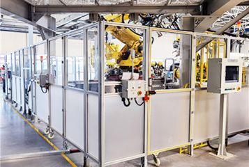 工業鋁型材圍欄多適用於多種生產(chǎn)車間或是室內外隔斷,功能是用於(yú)進行隔斷和區(qū)域規劃。整體選用鋁型(xíng)材當作立杆,搭配不同的材質的隔離片網拚裝,底部應用配件與地(dì)麵直接接觸進行固定(dìng)。